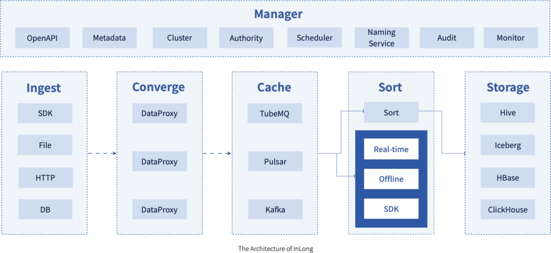 InLong 以腾讯内部使用的 TDBank 为基础,依托万亿级的数据摄取和处理能力,将数据采集、聚合、存储、排序数据处理的全流程整合在一起。不仅提供自动、安全、可靠和高性能的数据传输能力,还支持基于流式的数据分析、建模和应用,帮助企业简化数据处理的过程。
