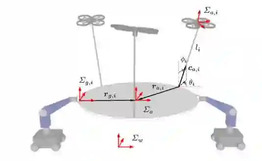 本文旨在为由无人机和UGV组成的异构团队合作运输负载奠定基础。无人机通过不可伸展的电缆连接到负载上,并可以自由地浮在物体上的电缆连接点周围。这种冗余与系统模型一起被利用来设置考虑若干目标的最优规划问题,如无人机和UGV之间的负载分布以及可由无人机生成的可行扳手的空间。