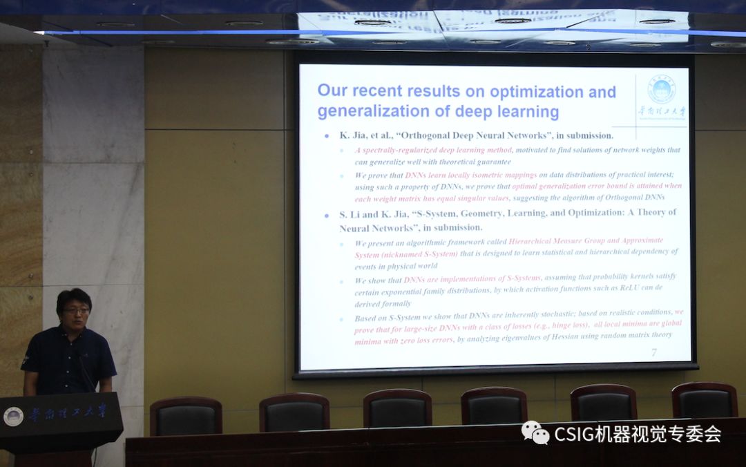 华南理工大学电子与信息学院教授、国家青年千人、广东省“珠江人才计划”创新创业团队带头人贾奎教授做了题为“小样本、大模型、及迁移学习”的学术报告,介绍了在深度学习理论研究领域的一些独特的思考,特别针对小样本、大模型情况下视觉分类问题,提出了一种新方法及新模型MetaFGNet,并对未来发展方向进行了讨论。
