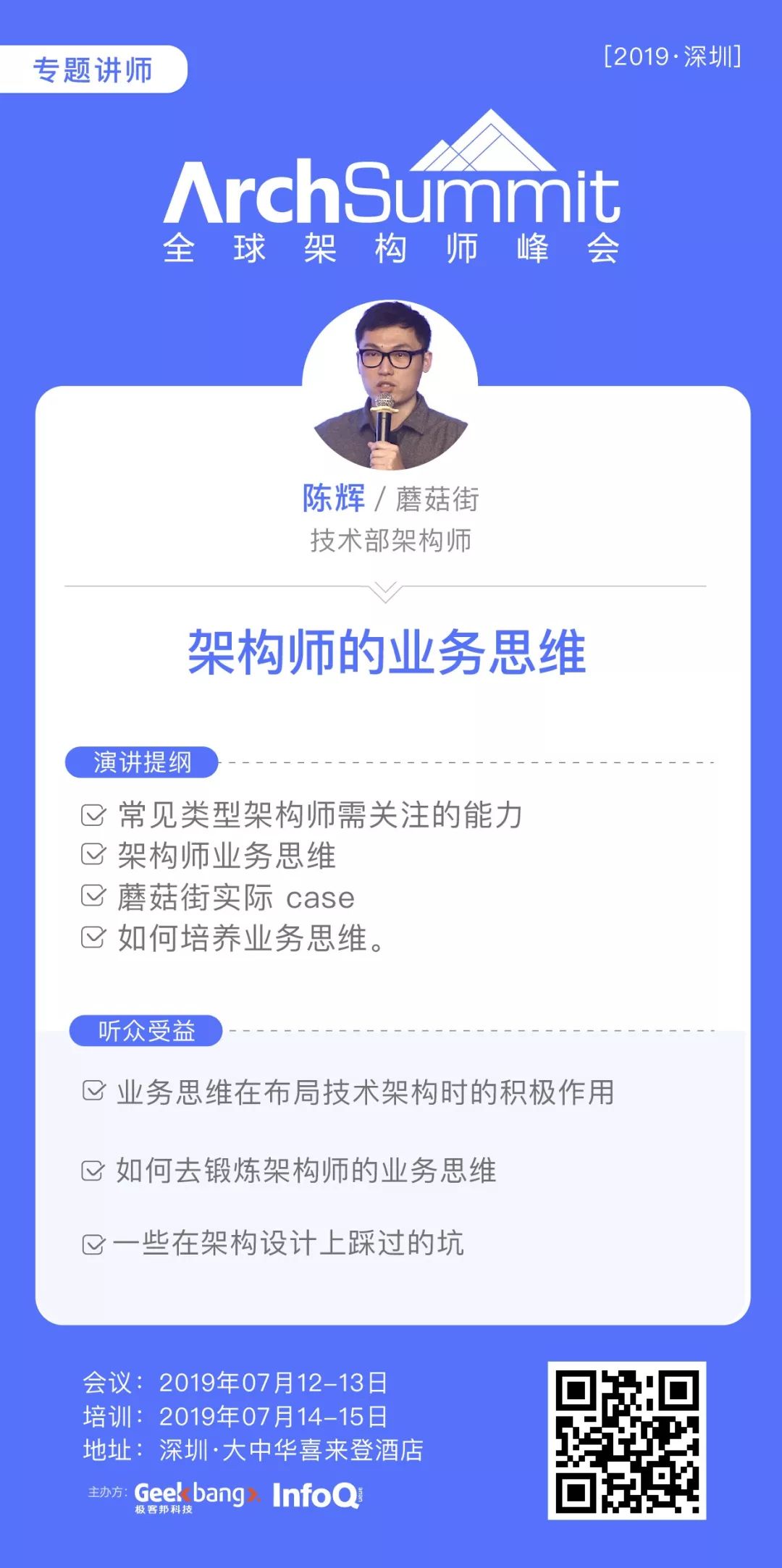 7 月深圳 ArchSummit 会议上,我会分享如何锻炼自己的业务思维,以及我自己过去的经验新心得,感兴趣的可以来现场交流。现在 8 折购票,可以联系票务灰灰 17326843116