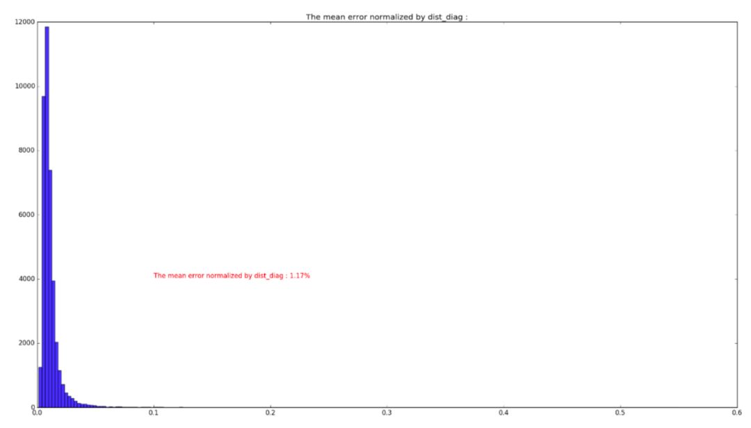 从误差分布图可以看到,误差分布呈高斯分布状,训练与测试的分布形状基本一致,通过误差分布图可知,在训练集中,绝大部分误差小于 5%,因此在选取 level_1 的裁剪阈值时,可参照此图进行调试。