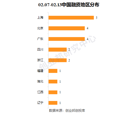 本周北上广融资事件共13起,占比61.90%。