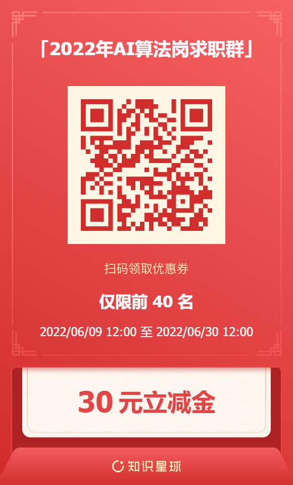 Amusi 在此赠送限量的 40 张 AI算法岗求职群(知识星球)30元优惠券!今年最大的优惠力度!今年、明年和未来几年要找工作的同学们可以抢起来了~注:2022年是针对2022届、2023届,但星球一直不会变(24届及以后都会在里面),里面的内容永存!