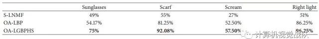 实验数据:AR库上选取80个人(男女各一半)的240张无遮挡人脸,每人三张图像分别为自然表情,微笑和生气。选取三种光照条件下240张围巾遮挡图像和眼镜遮挡图像。