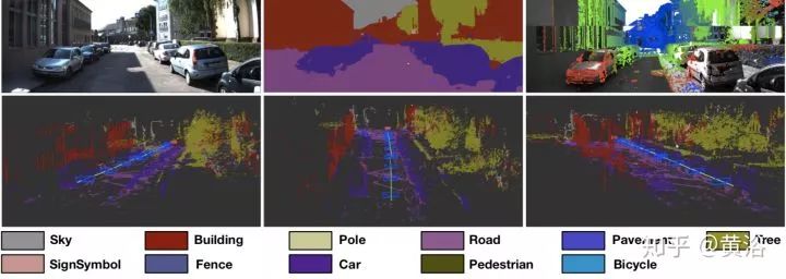 语义分割采用DeepLab-v2,SLAM是以前的LSD-SLAM,而Dense Conditional Random Fields(CRFs)负责3-D的融合。下图是一个结果例子: