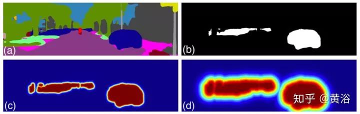 其中σ = 10 (c),σ = 40 (d),而 (b)是二值图像。