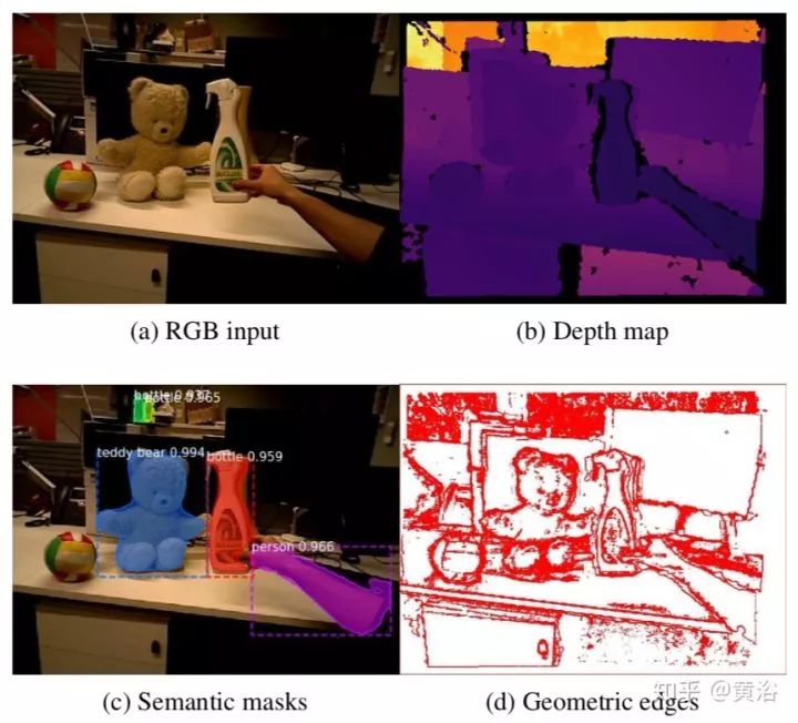 结合了RGB-D SLAM,语义层次上借助深度学习的目标检测和3-D分割。
