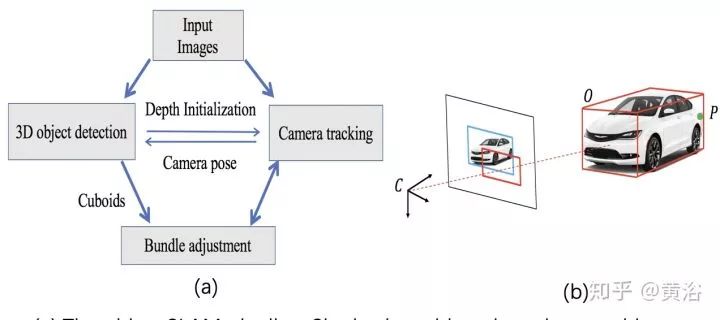 下图(a) 是目标SLAM 流水线,而(b)是BA中摄像头,目标和点之间的测量误差。