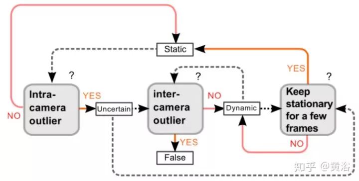 关于地图中的point classification,分类类型即‘static’, ‘dynamic’, ‘false’ 或者 ‘uncertain‘,判别流程见下图: