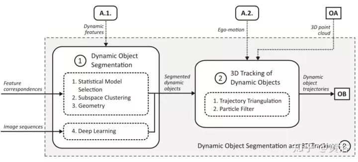 第二类 “B)Dynamic Object Segmentation and 3D Tracking“ ,同样的,其框架图如下: