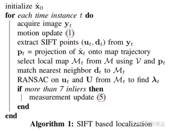 基于以上的公式,可以给出基于SIFT特征的定位算法如下: