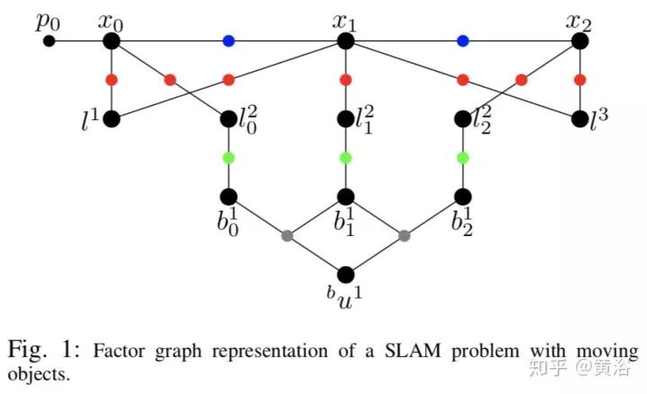 基于factor graph处理SLAM的动态物体的运动干扰。下面三个图都是SLAM的factor graph。