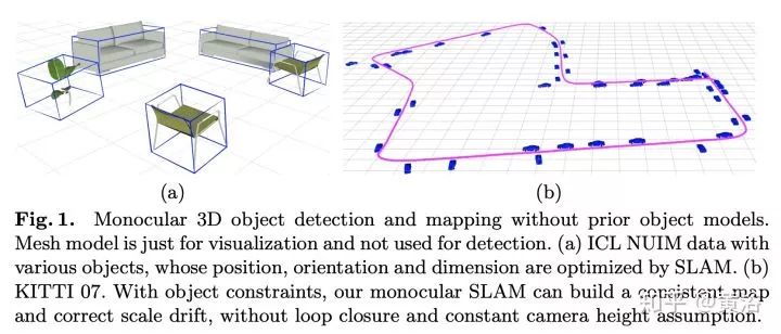 以前在3D目标检测中介绍过。这里重点是,作为一个multi-view object SLAM系统,3-D cuboid proposals在Multi-view bundle adjustment (BA)得到优化。