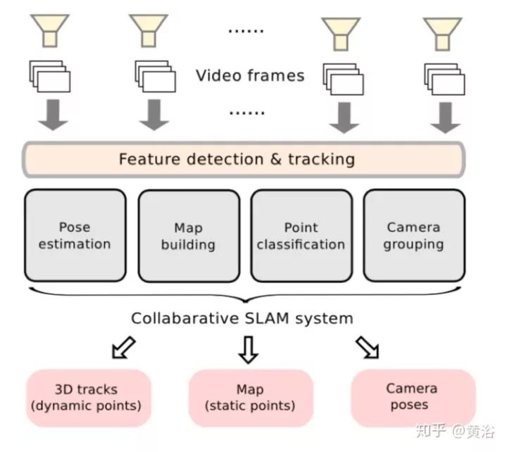 采用多个独立摄像头协同工作的SLAM系统,如下图: