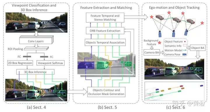 文章讨论如何从2D检测推断3-D检测的方法,本身采用双目视觉,这样做的原因是计算量小。提出在目标基础上的摄像头姿态跟踪估计,还有动态目标 bundle adjustment (BA)方法,依此融合语义观测模型和稀疏的特征匹配结合以获取3-D目标的姿态,速度和结构信息。