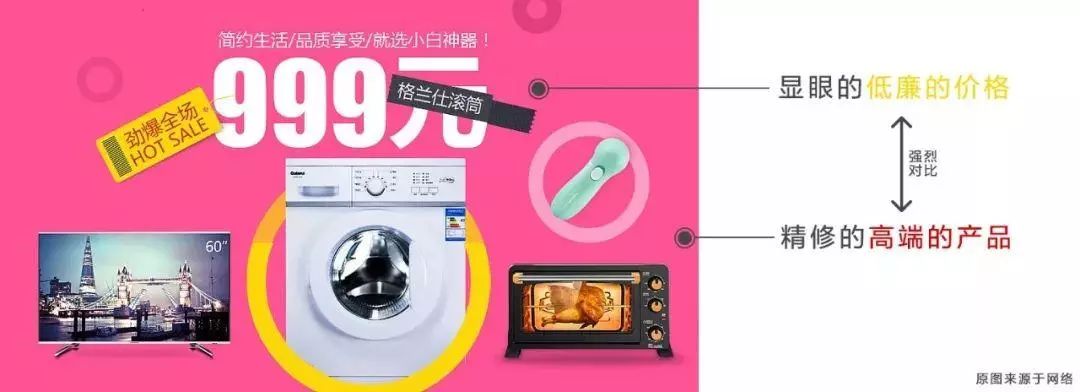 从追求低价高端产品入手,从而思考出在设计广告banner图时能不能突出制造对比来抓住用户需求,解决用户痛点。