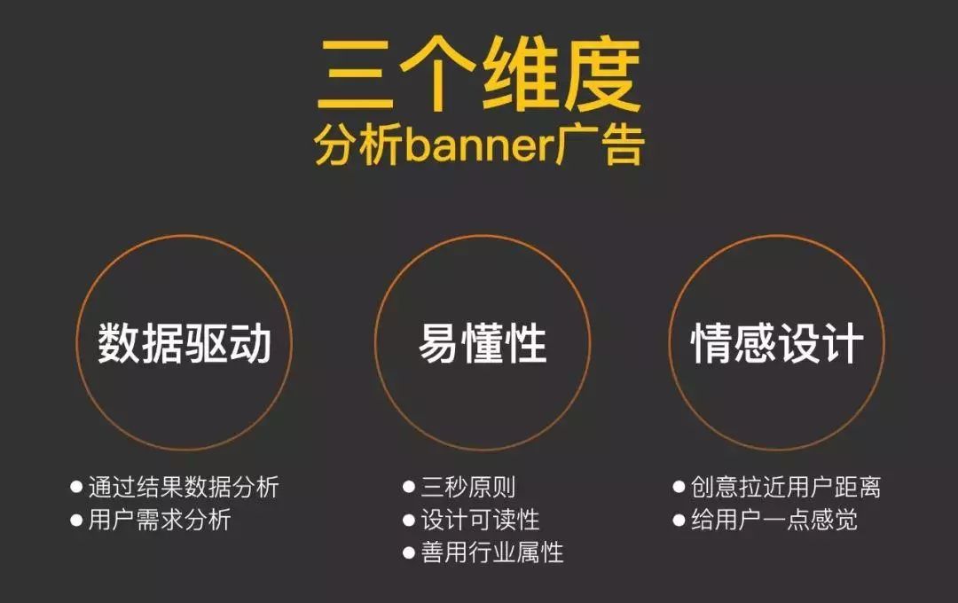 而设计师在设计banner广告图之前,一般会参考之前投放的结果数据,例如设计A类的广告投放量、阅读量、点击率等等数据去分析A图的好坏,再通过大量的数据比对来分析出A图中哪个单一框架所产生的作用更大,从而为后面的设计做参考。