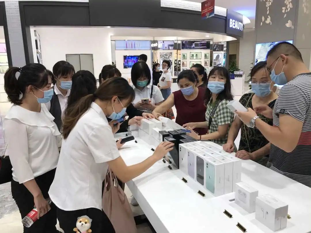 海口日月广场免税店内的 iPhone 柜台.图片来自:新华网