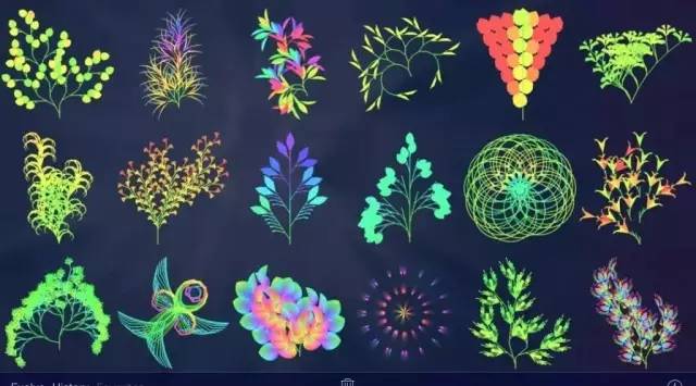 有兴趣的读者可以尝试自己调整符号集合和数学规则,可以得到许多不同的奇妙植物的图像,例如: