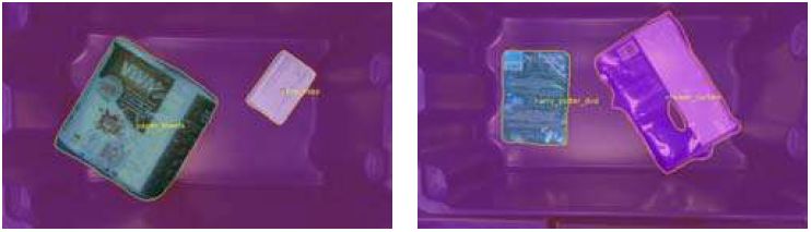 图3 自动分割结果范例。右边显示了一个失败示例,其错误地将项目的红色部分视为背景。这种故障情况可由人工操作人员手动纠正。