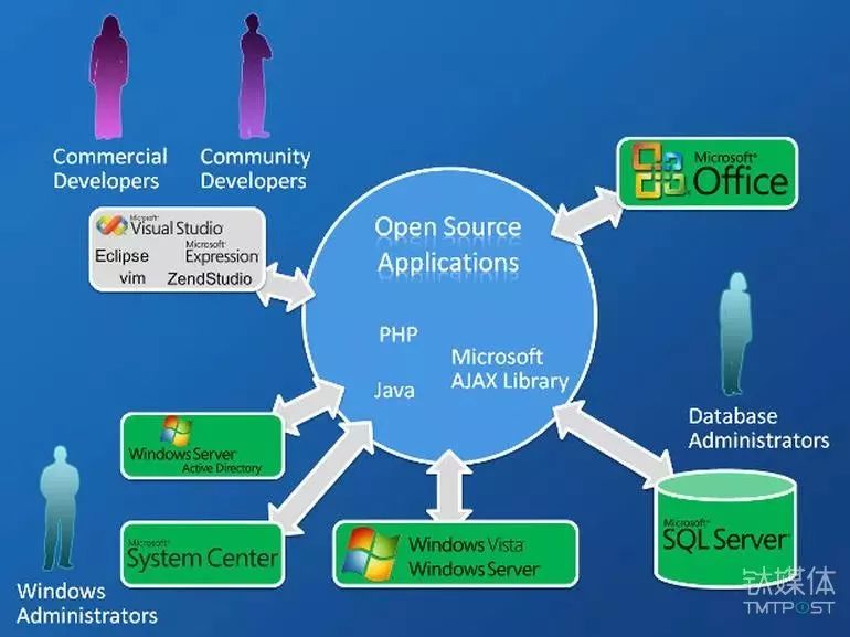 微软官方明确自己的开源战略是“聚焦于帮助消费者和合作伙伴在多样化的技术世界里取得成功”。