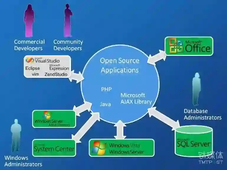 自90年代到21世纪初,微软同整个开源阵营之间相互颉颃,彼此将对方视作眼中刺。