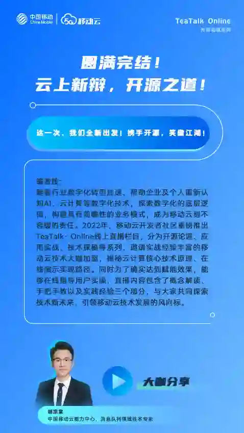 3月2日,TeaTalk· Online开源论道系列活动第一期——“开源时代,如何续写‘侠义江湖’”线上直播成功举办。本次直播围绕开源的本质,针对高性能、高可靠、高SLA和灵活部署特性,分析开源社区与其他生态合作、联创与共建,拓宽技术的应用领域,实现贡献外部开源需求的同时也让开发者自身技术走向成熟。