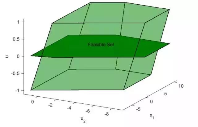 根据不同的MPC优化控制问题描述,可行域通常为椭圆体或多面体两种类型。由于椭圆体的大小与其加权矩阵的某种测度有关,这类可行域的大小是很容易求解的。多面体型的可行域的求解则要困难很多,现有的常规解法是利用正则投影,但这种方法的计算复杂度随着MPC优化问题参数的增加而急剧增加,往往参数达到几十时,计算量就庞大到无法完成(具体表现为电脑内存因中间计算变量的剧增耗光,导致求解终止)。