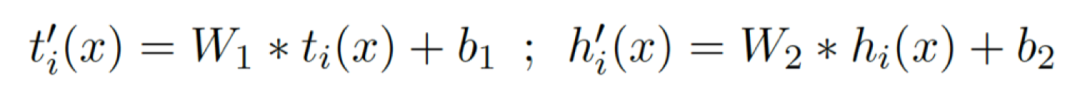 该模块主要包含两步:融合和分拆。在融合过程中,先对各自表示进行转换后,使用CNN抓取局部特征将两个来源的信息融合到一起:
