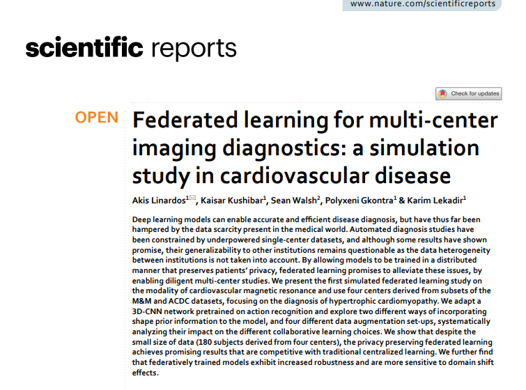 便捷下载,请关注专知人工智能公众号(点击上方蓝色专知关注) 后台回复“FLMID” 就可以获取《【Scientific Reports】《多中心影像诊断的联邦学习:心血管疾病的模拟研究》》专知下载链接