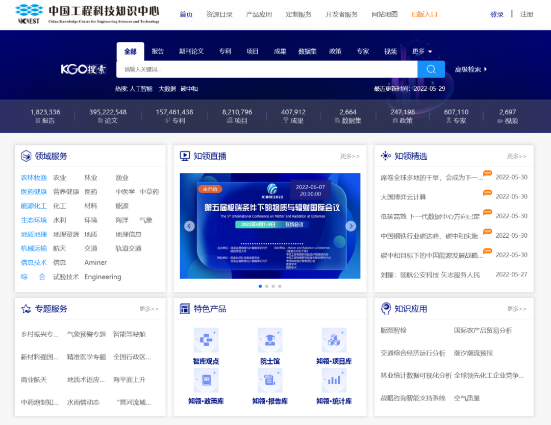 作为中国工程院的国家高端智库信息化品牌之一,知识中心最早是2012年由潘云鹤院士提出。知识中心定位“顶天立地”,“顶天”是支撑国家高端工程科技智库建设,为国家工程科技领域重大决策、重大工程科技活动、企业创新与人才培养提供信息支撑和知识服务。“立地”就是要为工程科技工作者以及学生群体提供数据服务。