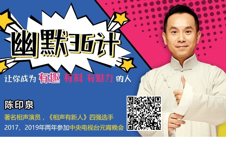 今天,创业邦邀请到一位科班出身的幽默大师——著名相声演员陈印泉,打磨出系列视频课程《幽默36计》,帮你掌握幽默的思维公式,巧妙化解职场、社交、家庭、情感的各种难题。
