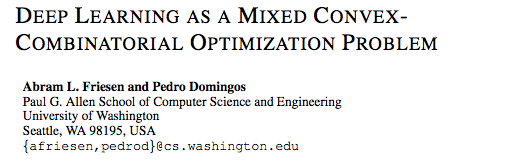 现在,越来越多的研究者开始探讨反向传播之外的方法。《终极算法》(The Master Algorithms)作者、华盛顿大学教授Pedro Domingos和同事Abram L. Friesen今天在arxiv发布的论文《Deep Learning as a Mixed Convexcombinatorial Optimization Problem》就提出了一种使用离散优化,而非反向传播的深度学习方法。