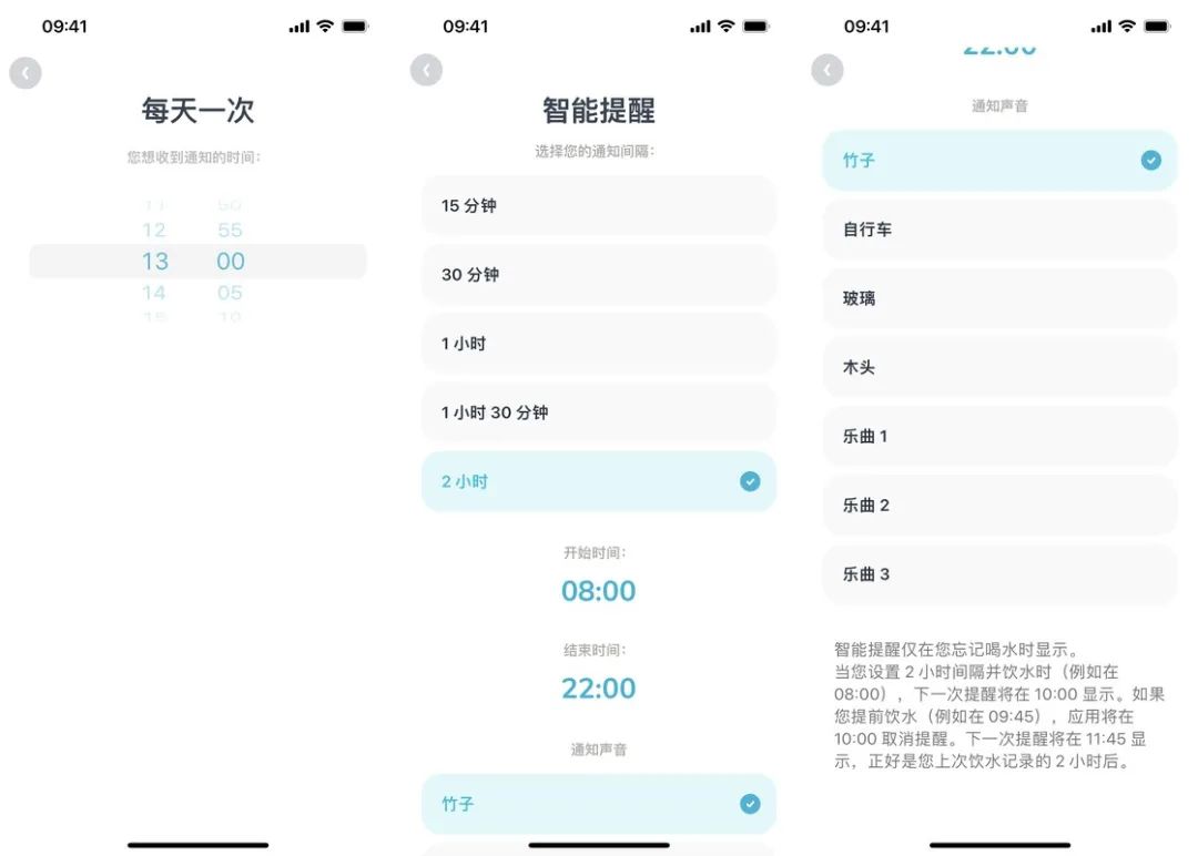 利用改进交互方式降低记录难度是一个促进我们记录的方法,但是更多时候我们会在饮水后忘记记录,大部分应用的应对方式是设置固定提醒。然而这种应用出于善意而给出的解决办法似乎并不为我们所接受,每天处理各类通知已经足够焦头烂额,还要有一个无情的喝水提醒机器不管你是否已经进行了饮水记录,都不断地向你发出饮水「骚扰」,因此我们要么干脆无视饮水提醒,要么关闭通知了事。