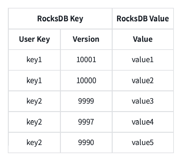 一个 Key 的每次更新都在系统中产生一个新的版本,保证新的写入不会影响到旧的读的快照。