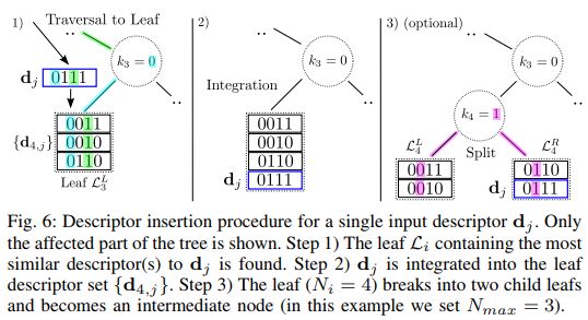 可靠高效的视觉位置识别是现代SLAM系统的主要组成部分。在本文中,我们结合以前的工作,提出了用于二进制描述子匹配和图像检索的汉明距离嵌入二进制搜索树(HBST)方法。HBST通过利用二进制描述子的特有属性,可以在对数时间内进行描述子搜索和插入。通过对被利用的描述子属性及其对搜索和插入的完整性和复杂性的影响进行全面分析,我们支持搜索结构背后的思想。HBST可作为紧凑的开源C ++头文件库。