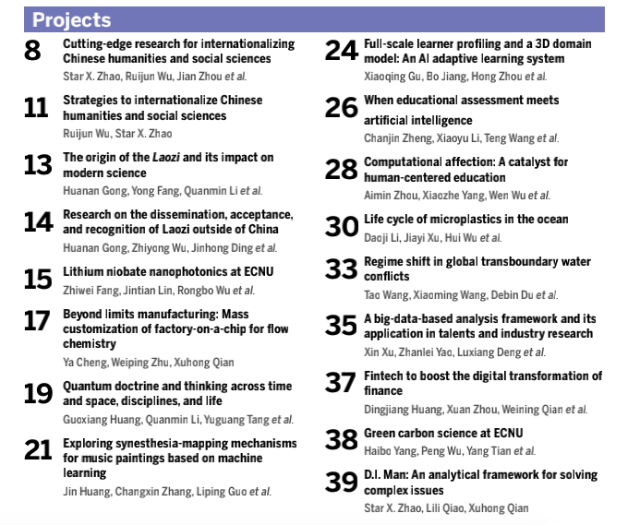 比如华东师范大学的校庆专刊上,有 Projects 板块,收录的全都是科研话题文章。虽然不是严格意义上的学术论文,但也没超出期刊本身定位的范围。