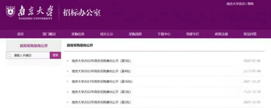 1月7日,有媒体关注到,南京大学招标办公室于官网公布了《南京大学2022年政府采购意向公开