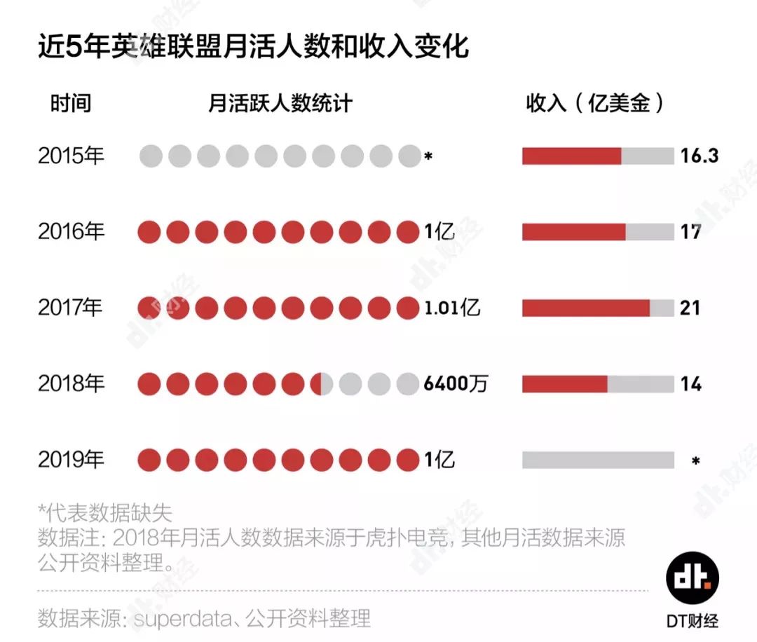 2018年,英雄联盟没有发布月活用户数量,但第三方机构代替LOL发布了数字——6400万,将近四成用户在2018年离开了LOL。