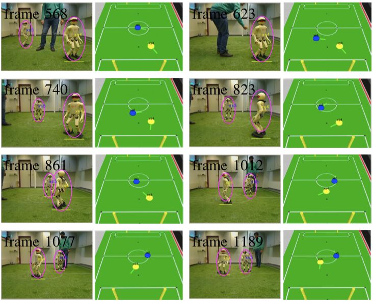 能够完成很多通用任务的协作机器人在很多场景下都十分必要。为了让机器人实现协作,其中一个重要的挑战就是互相追踪和辨认。我们提出了一种新型在线视觉检测、追踪、定位机器人的方法,可以在有限的硬件上实时进行。