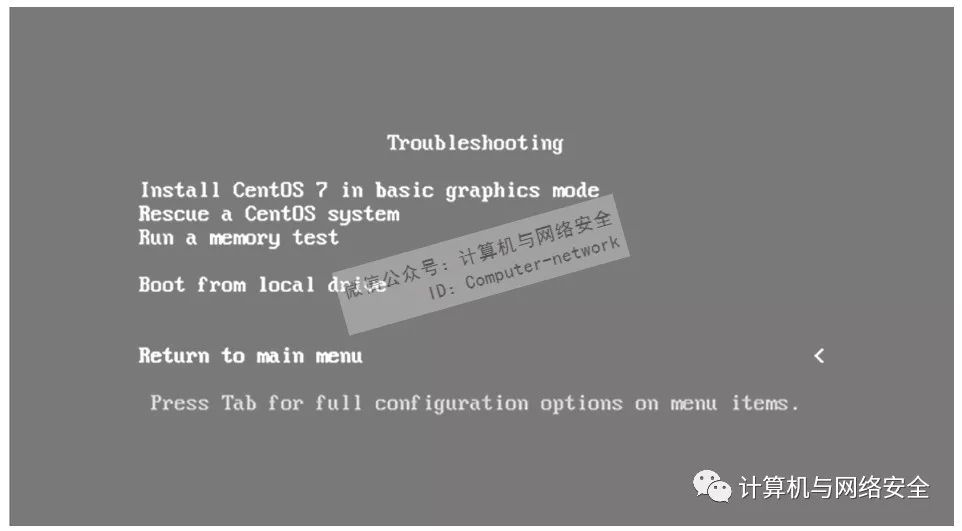 图12 从CentOS安装光盘主菜单链接到Troubleshooting菜单