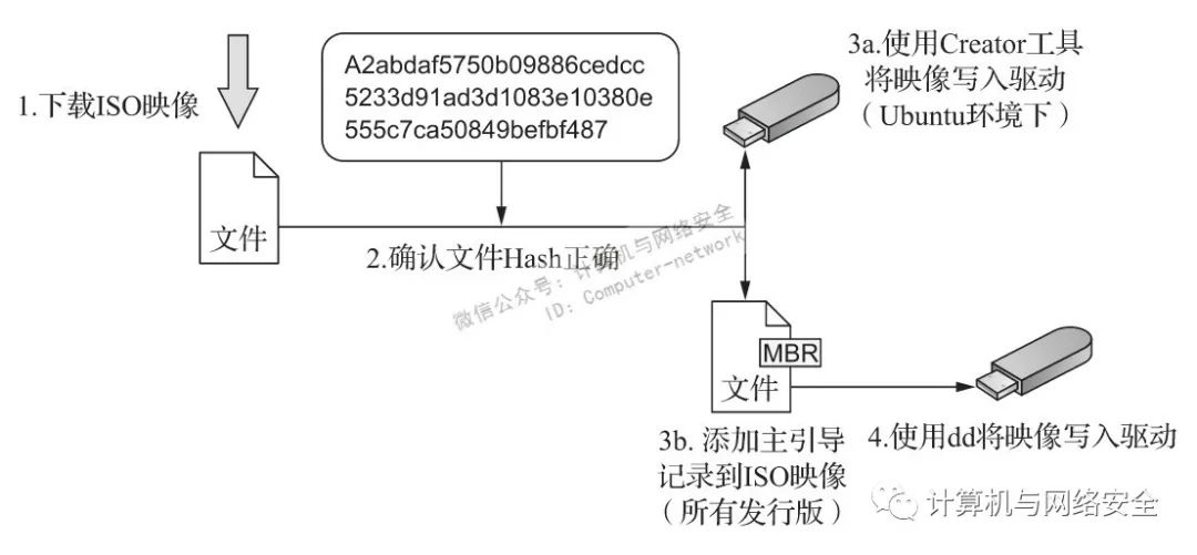 在可以写任何.ISO映像之前,需要下载它。这里假设能找到正确的发行版网站上的网页并下载它。但下载大型文件有时会在网络传输时被破坏。更糟的是,它们可以通过入侵或者中间攻击者被替换成恶意软件。有些人下载MINT Linux一段时间后就发生了这样的事情。