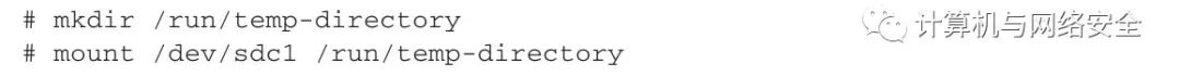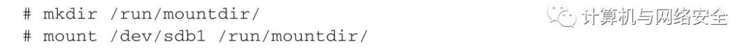 分区可能无法作为文件系统被访问,因为它还没有被挂载。事实上,如果df命令的结果中没有显示它,那么必须挂载它,这意味着将其分配到文件系统中一个可被访问的位置。可以创建一个挂载分区的新目录,然后使用mount命令快速解决这个问题。选择在/run/目录中创建临时挂载点,碰巧找到的任何未使用的位置(如/media/或/mnt/)也可以。我们假定分区名称为/dev/sdcl: