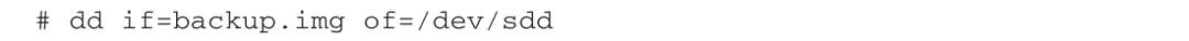 为了测试修复,可以使用dd命令将备份映像写到一个新的、空的驱动器(例子中称为/dev/sdd/),然后启动系统到新的驱动器: