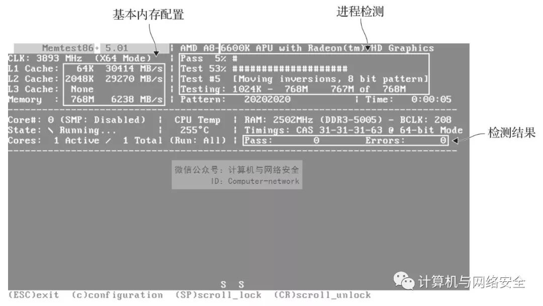 图11 Memtest86+工具显示你的RAM内存中任何错误的位置和种类。该系统是完好的(迄今)