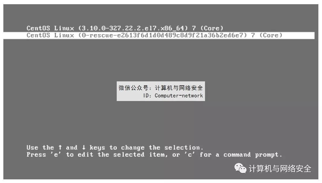 图5 CentOS Linux提供救援内核,用于直接引导到单一用户shell会话,以对损坏的系统进行故障排除