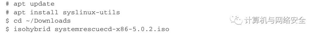 另一方面,如果需要在不同发行版本下构建的原生系统引导设备(试图挽救CentOS机器并希望使用CentOS工具来完成),那么将需要重新使用dd了。如果想让一个基于CD或DVD的原生系统可启动,运行在任何Linux主机上的dd都能胜任这个工作。但如果映像被写入一个USB驱动器,而碰巧在Ubuntu主机上工作,首先需要添加一个MBR到.ISO文档以修改映像,BIOS和UEFI固件将知道如何运行。图9展示了该过程。