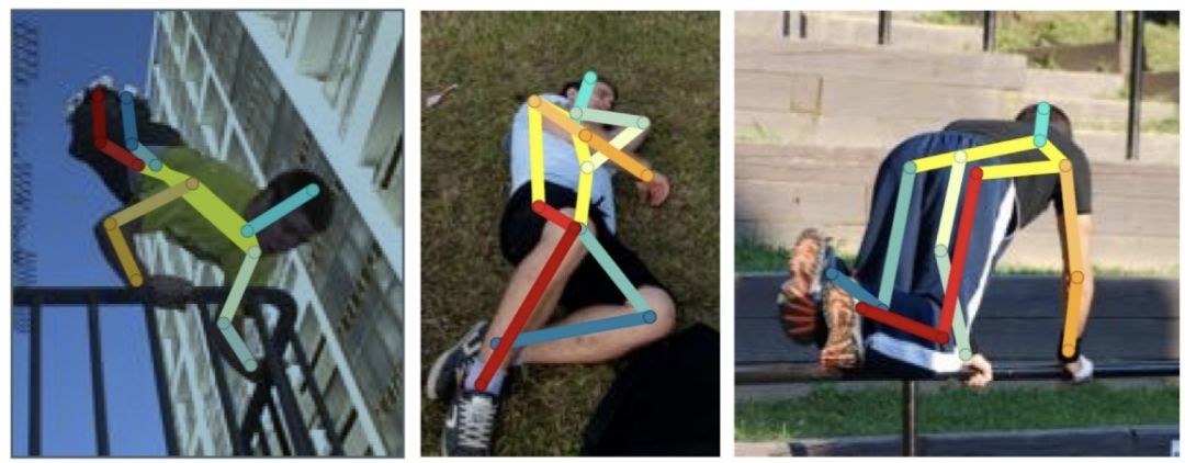 8. 结果可视化:下面是几个使用 Res 模块的堆叠沙漏网络实验结果的可视化,可以看到预测出了基本的人体姿势。