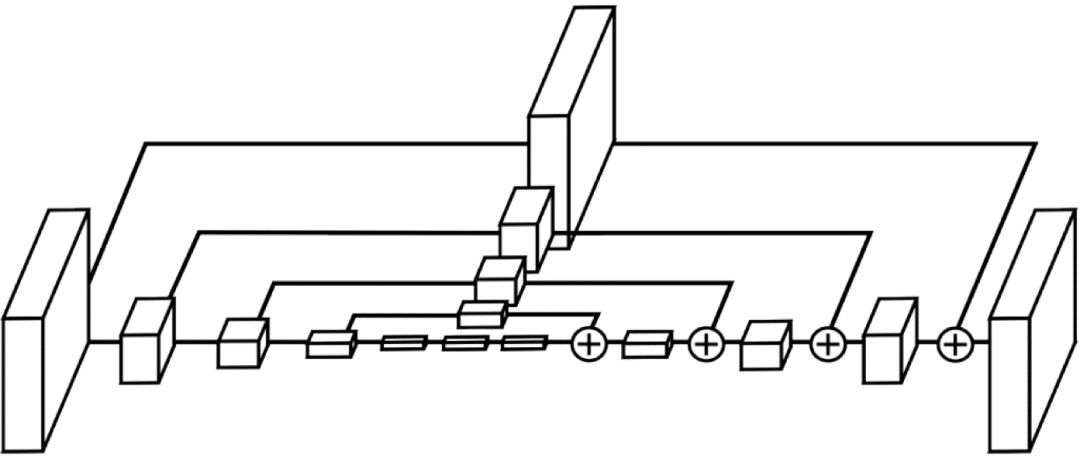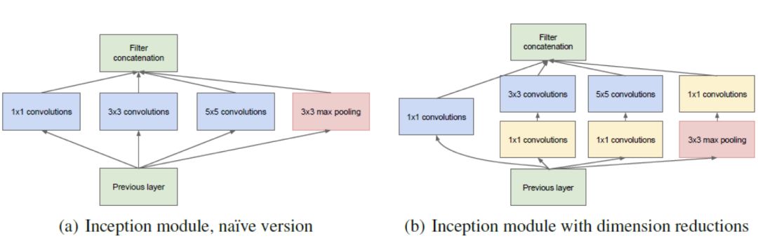 为了捕捉不同尺度的,除了使用短接层,还可以使用不同的卷积核同时进行卷积,再将得到的特征进行叠加,比如 Inception 模块 [3]。Inception 模块通过使用不同大小的卷积核以及 1*1 的卷积使得网络能够捕捉不同分辨率的特征,并减少参数数量。