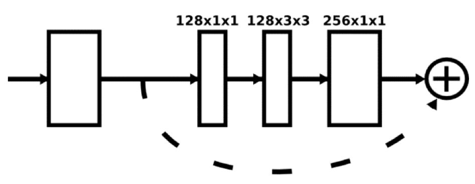 注:代码中的 bn_relu_convn*n 是对依次使用 PaddleFluid 的 batch norm、relu 和卷积核为 n 的 conv2d 的封装。